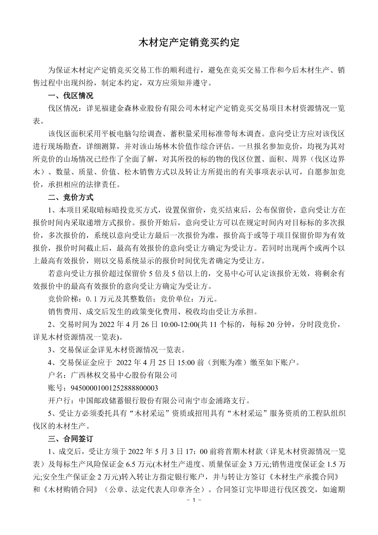 20220426(周二)福建金森林業股份有限公司木材定產定銷競買交易項目