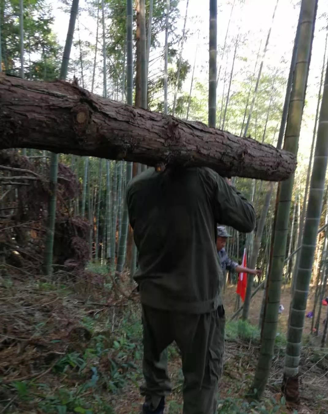 此次清理材主要分布在山脊上,入山無路,而且距離公路較遠,運輸林木必須穿過竹林從山頂上一路翻滾到山腳下,再用肩抗到公路,清回難度較大,為保證公司資源不流失,森保部退役軍人自行義務清材,活動中全體老兵斗志昂揚、不怕炎熱酷暑、戰勝重重困難,充分發揚出軍人的優良傳統和吃苦耐勞的作風,展現了退伍軍人永葆本色的風采,傳導著為公司發展無私奉獻的精神:穿上軍裝,我們是捍衛和平的勇士;脫下軍裝,我們是企業發展的脊梁,讓我們一心向陽跟黨走,永不褪色做先鋒!